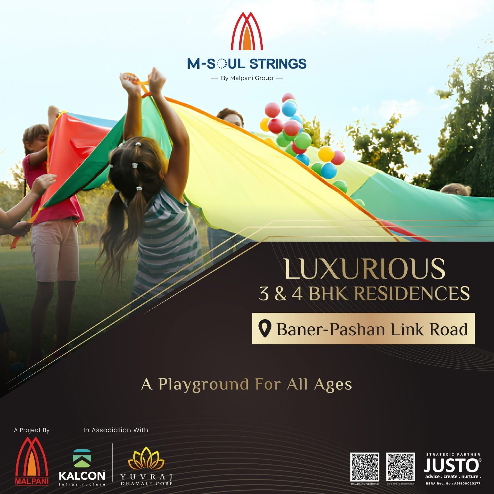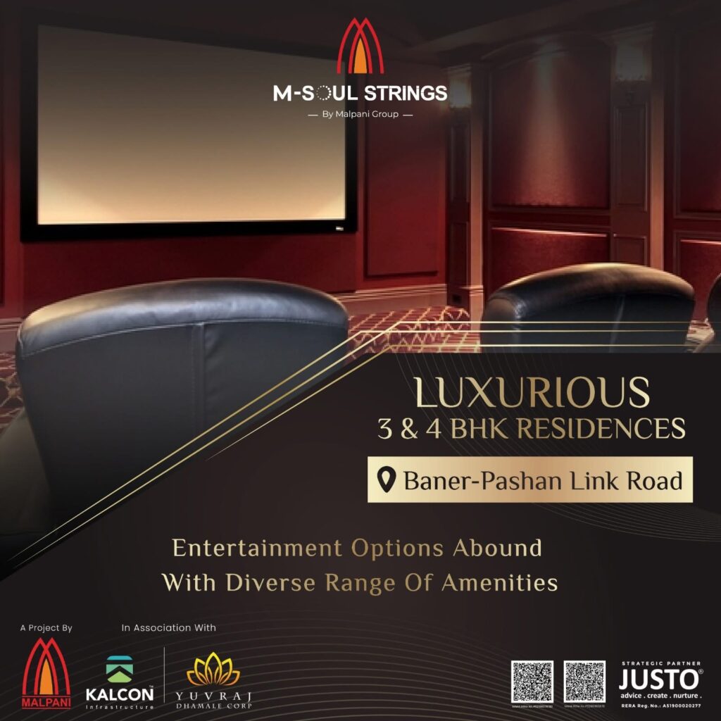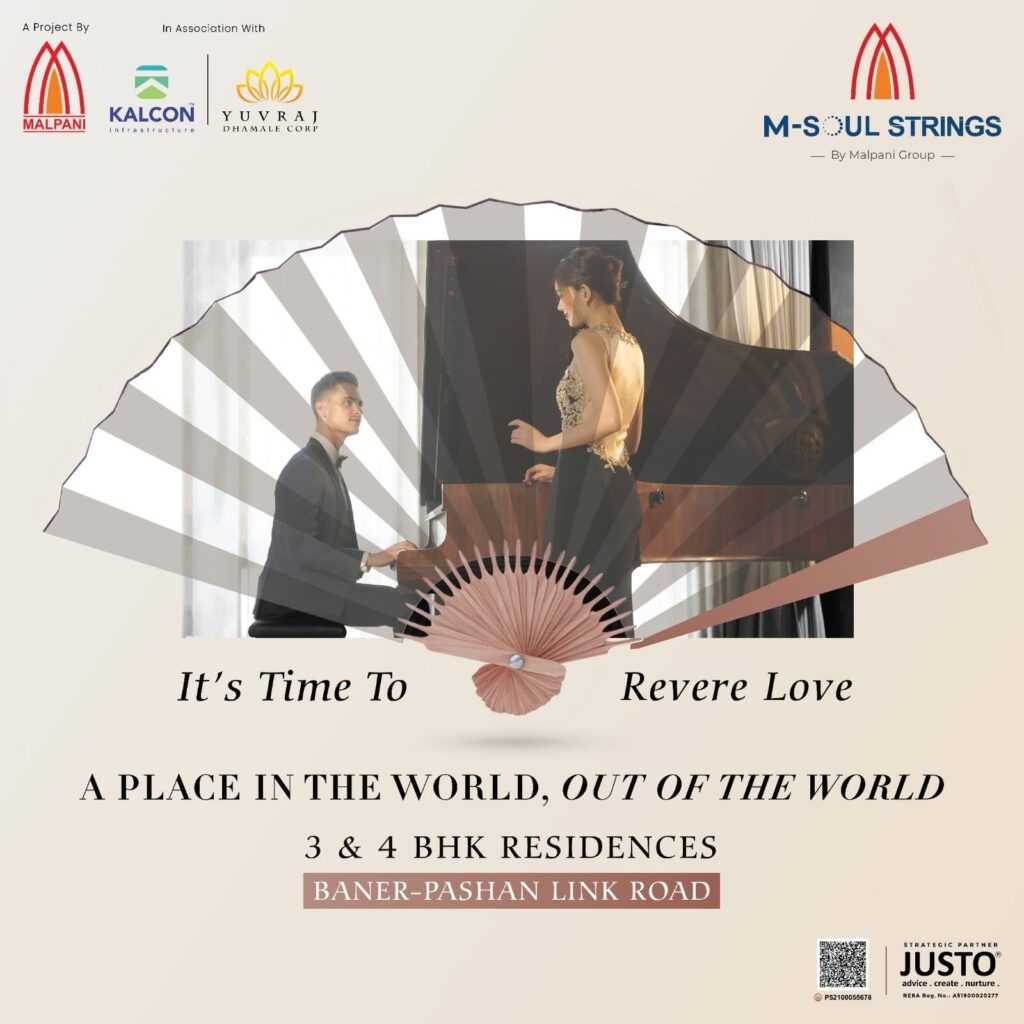 Welcome to M-Soul Strings, a masterpiece by Malpani Developers, offering an unparalleled residential experience in the heart of Pashan. Our project, Soul Strings, is designed to exceed your expectations, providing luxurious 3 BHK and 4 BHK flats in Pashan. As leading developers, Malpani ensures that every aspect of M-Soul Strings reflects sophistication and comfort. Nestled in the vibrant locale of Pashan, our project seamlessly integrates modern living with serene surroundings. Explore the epitome of elegant living with M-Soul Strings – where soulful living meets contemporary design. Discover your dream home in Pashan with Malpani Soul Strings Pashan, where every detail is crafted to perfection for a lifestyle that resonates with your aspirations..
